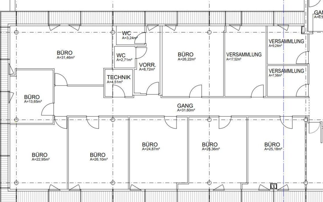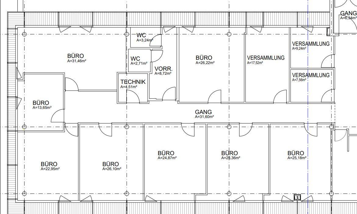 Die voll ausgestattete Liegenschaft befindet sich im 2. Stock eines Bürogebäudes und setzt sich aus 8 Büroräumen und drei Sitzungsräumen, durch Glaswände getrennt, zusammen. Die hellen Räume sind modern gestaltet und können autonom gesteuert beheizt und gekühlt werden.